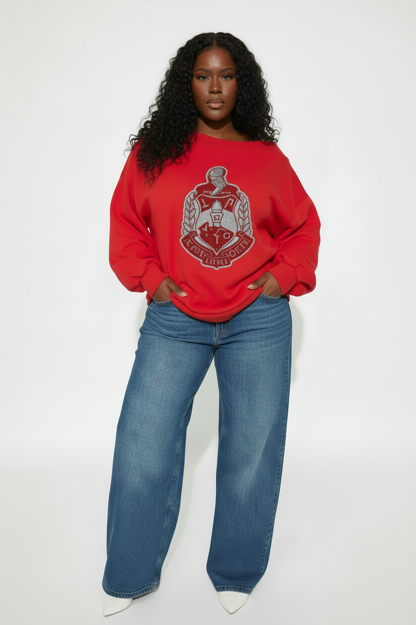 Make a statement as you step into 2026 with this iconic Delta Sigma Theta oversized sweatshirt. The trendy off-the-shoulder neckline pairs perfectly with luxe chenille puff branding for that premium feel, while the all-black palette keeps things timelessly chic with large bubble sleeves. Soft, snuggly fabric means you'll stay cozy without sacrificing styleβthe ultimate piece for looking effortlessly put-togetherH/ot Item!
