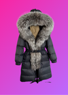 ChaIntroducing the Big Burr Chic - Women's Fur Parka Coat with a Large Fox Fur Collar and hood, complete with a stylish belt and warm puffer down filling. This luxurious coat is expertly designed to shield you from the coldest of temperatures. Refer to our sizing chart for the perfect fit - we recommend sizing down as this is an over size coat. Refer to chest size to gauge comfort size.